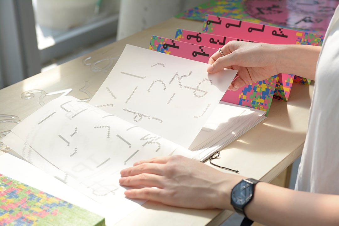 新たな文字を紹介するために本を作ることにした。文字の組み合わせ方や文字の使い方などの実験制作を集め、アートブックで表現する。